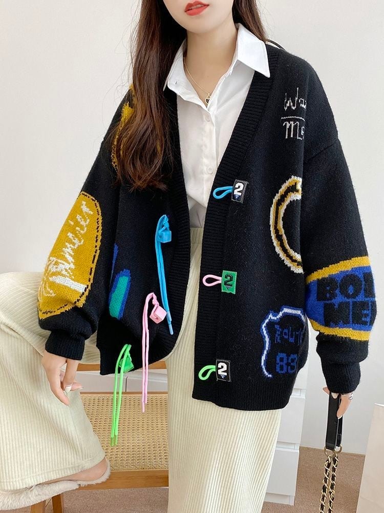 新作 アルファベットロゴ ジャカードニットカーディガン全2色<ins-4408>