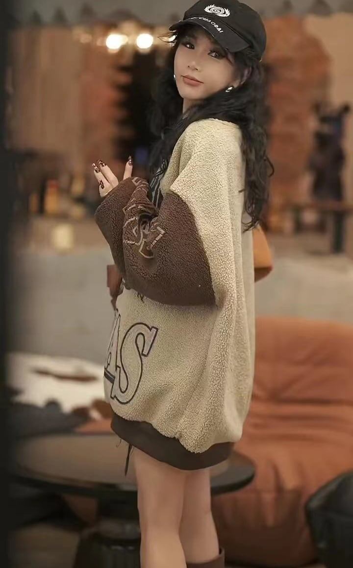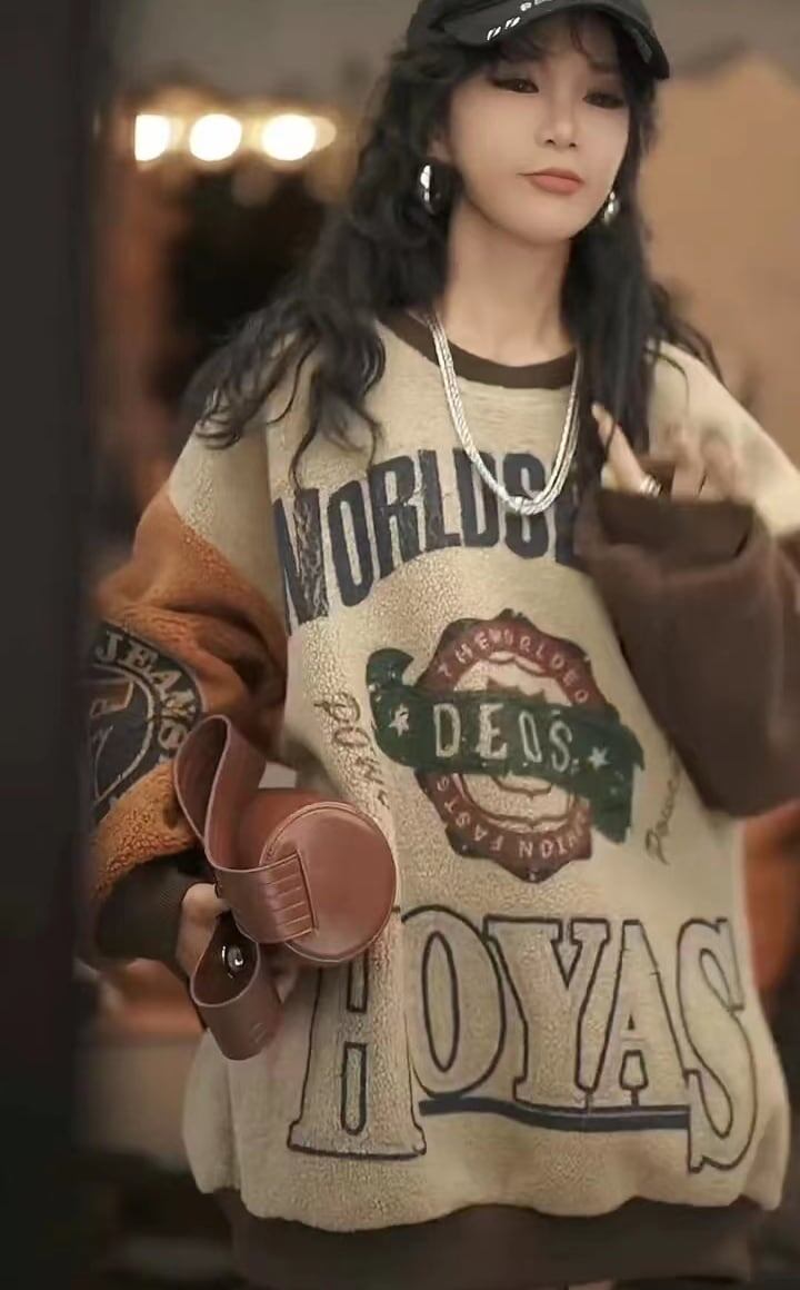 超人気商品刺ロゴ配色 切り替えボアスウェット<ins-4389>