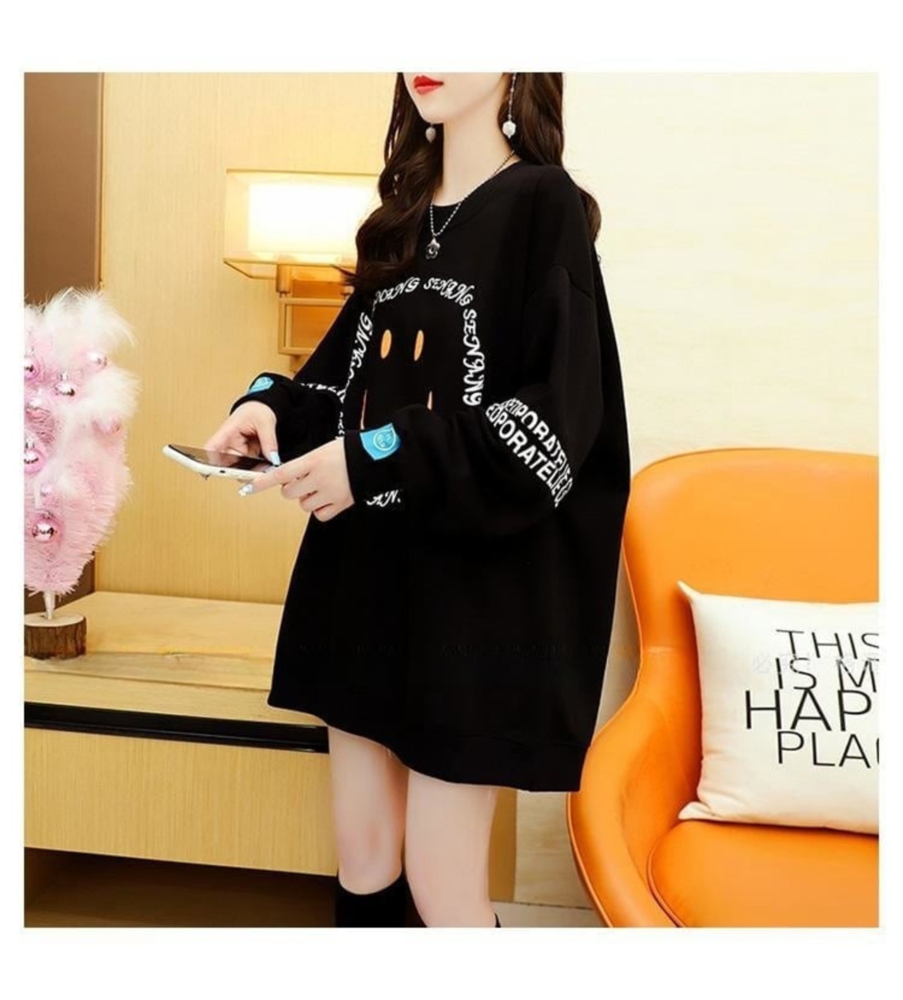 韓国系スマイルマークプリント三色ありスウェット<ins-4145>