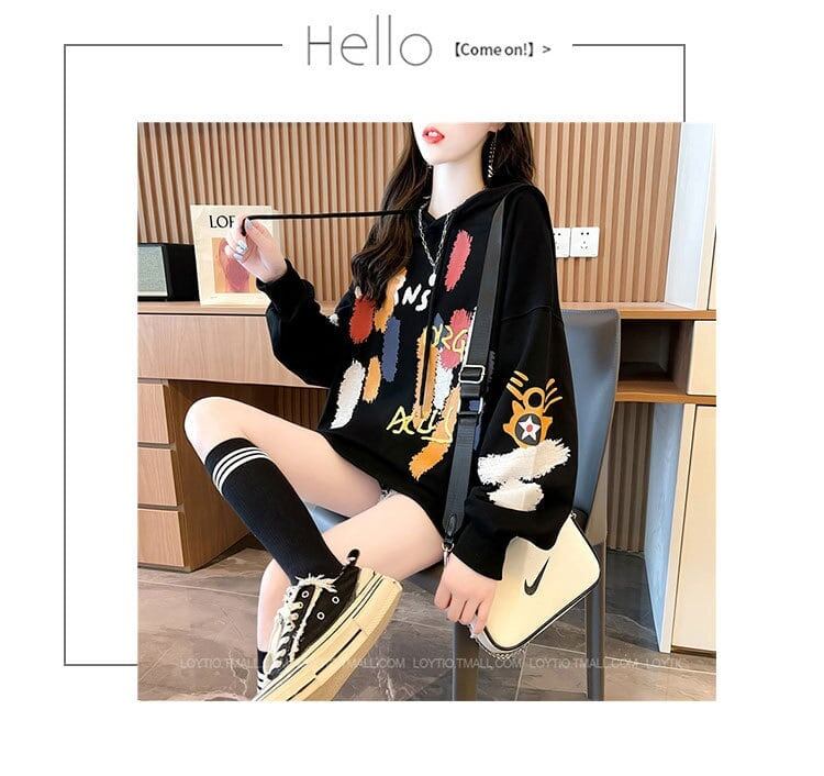 韓国系ビックロゴパーカートップス三色あり<ins-4329>