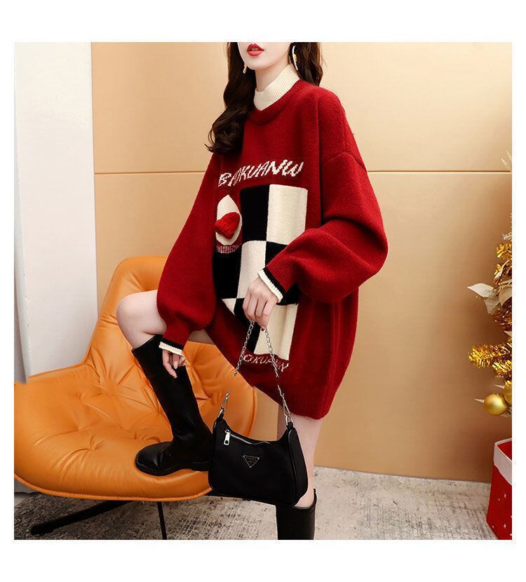 定番シンプルチェック柄ニットセータートップス全2色<ins-4309>
