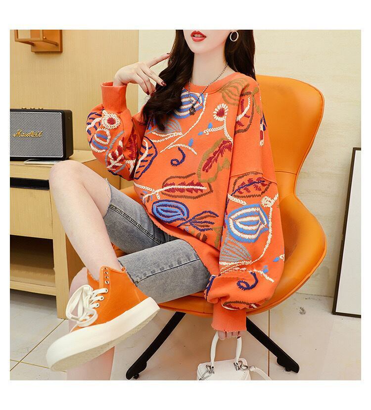 質感のいい刺スウェット五色ありトップス<ins-4153>