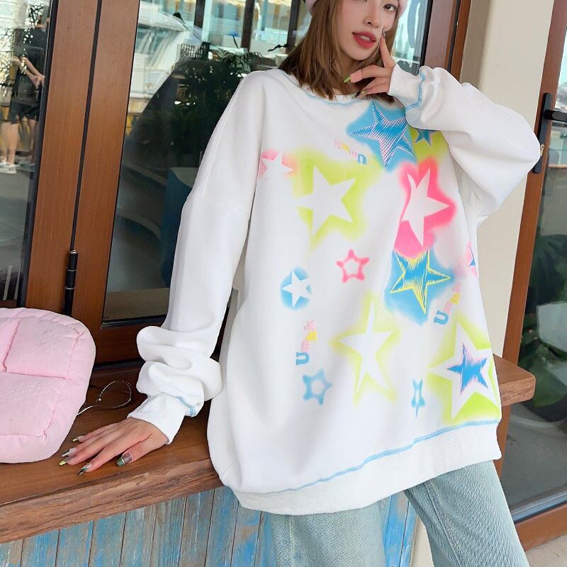 トレンドファッション星柄ロゴオーバーサイズスウェット<ins-4267>