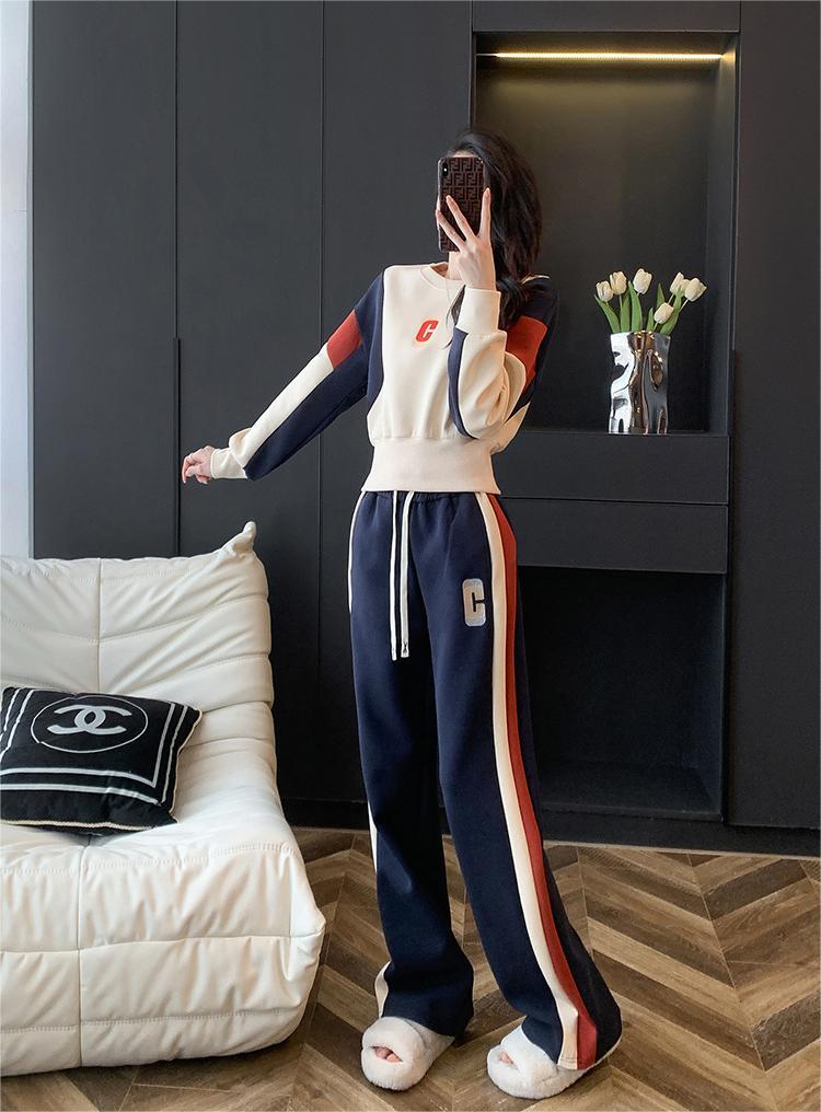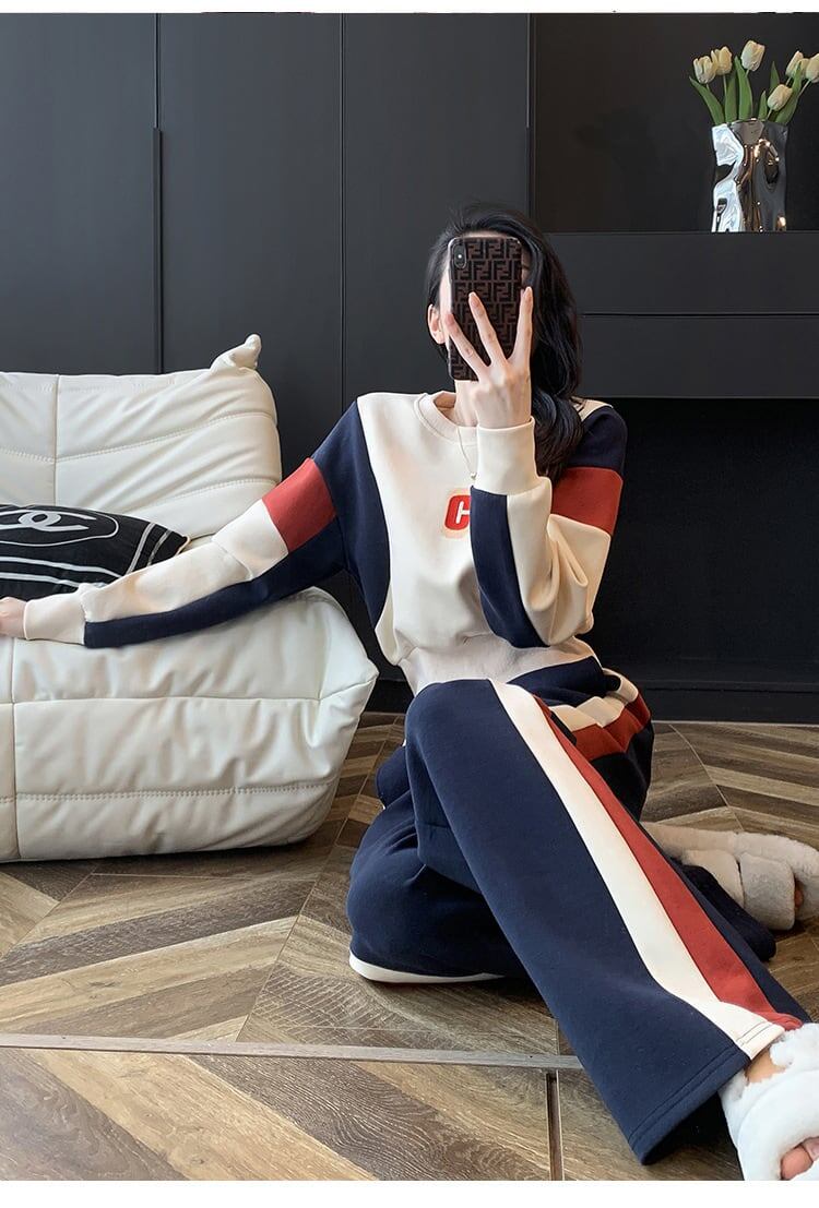 人気爆発 長袖スウェットXカジュアル ロングパンツ 裏起毛セットアップ二色あり<ins-4226>