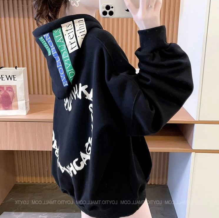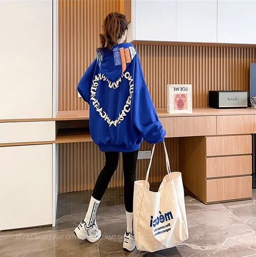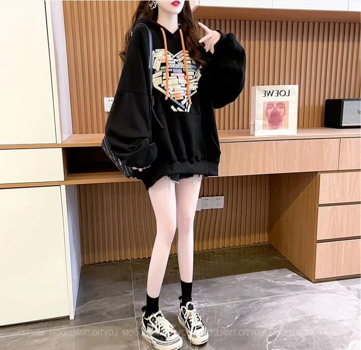 韓国系ハートマークプリントフード付き裏起毛パーカー三色あり<ins-4237>