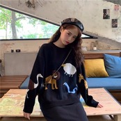大人可愛い動物柄 ブラックニットセータートップス<ins-4197>