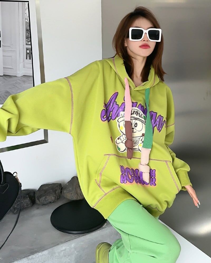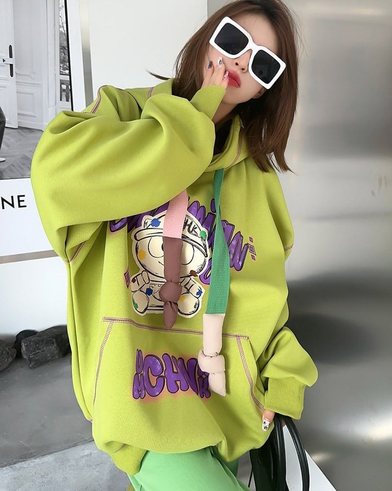 超人気商品 プリントフード付きパーカー三色あり<ins-4164>