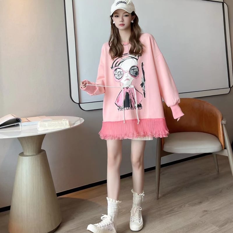 スウィート切り替えグラフィックプリント オーバーサイズ スウェット三色あり<ins-4163>
