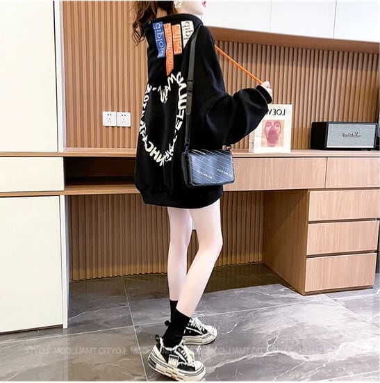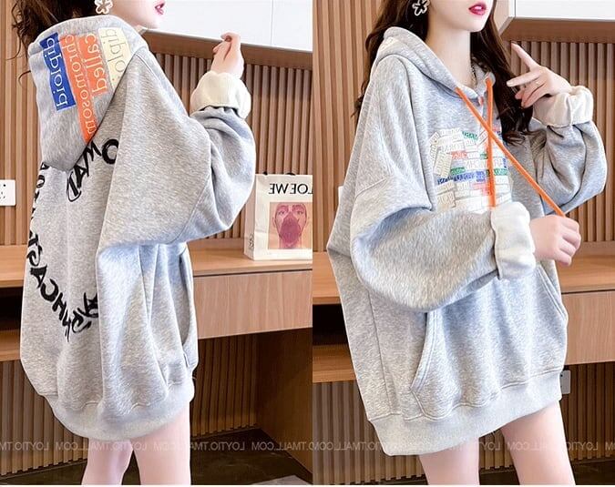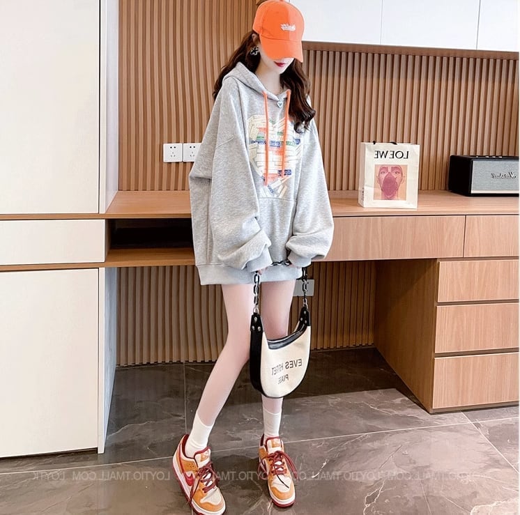 韓国系ハートマークプリントフード付きパーカー三色あり<ins-4143>