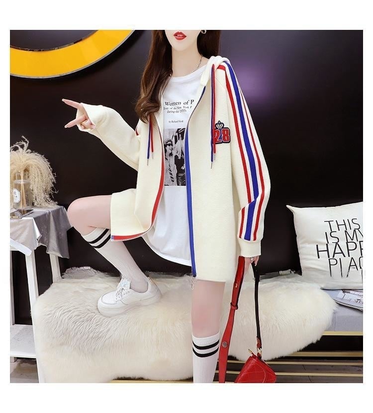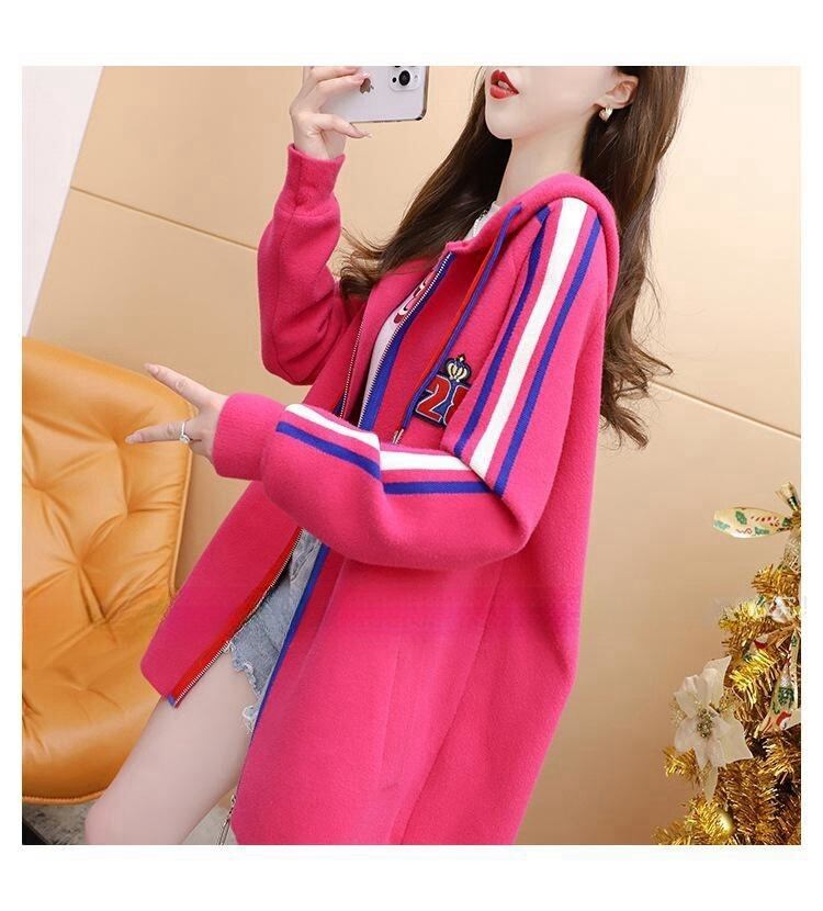 早い者勝ちボーダー柄ニットセーターフード付きカーディガン二色あり<ins-4149>
