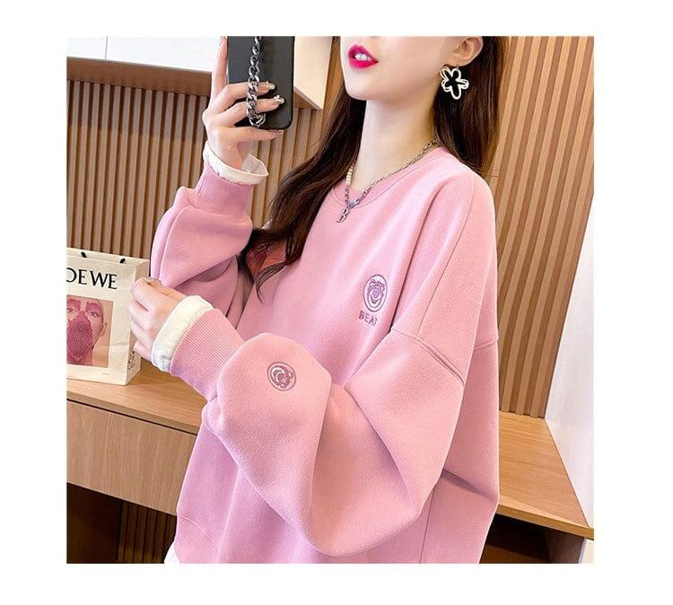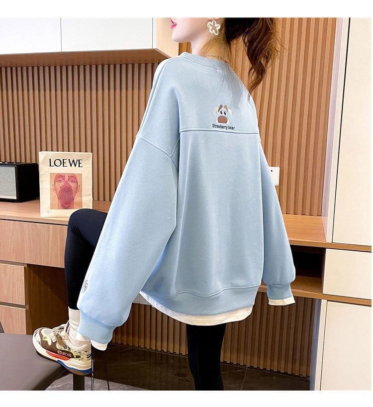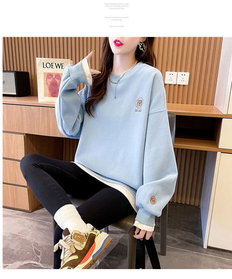 定番シンプル レイヤード風 ベアロゴ スウェット二色あり<ins-4137>