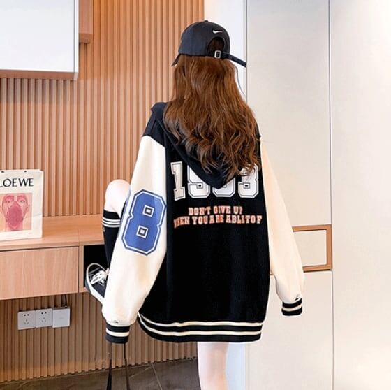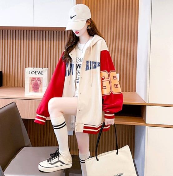 ゆったりとしたミドル丈のフード付きカーディガンジャケット<ins-5068>