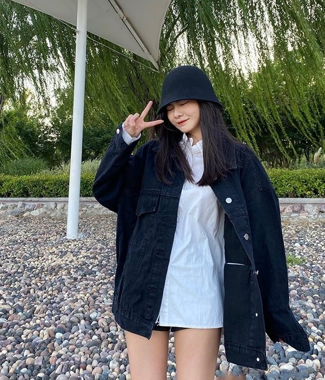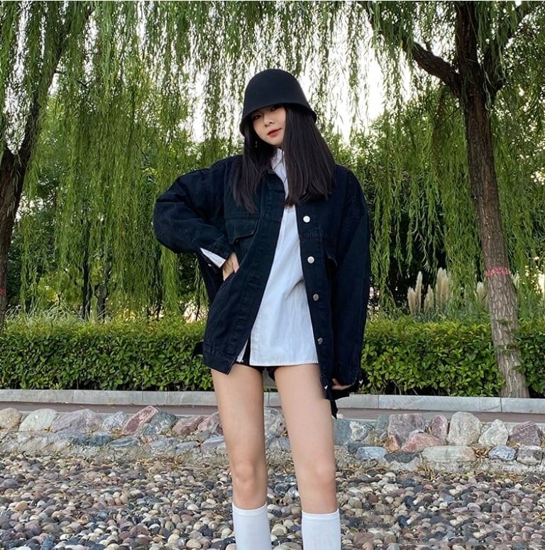 早い者勝ち 漫画刺繍入りブラックデニムジャケット<ins-5187>