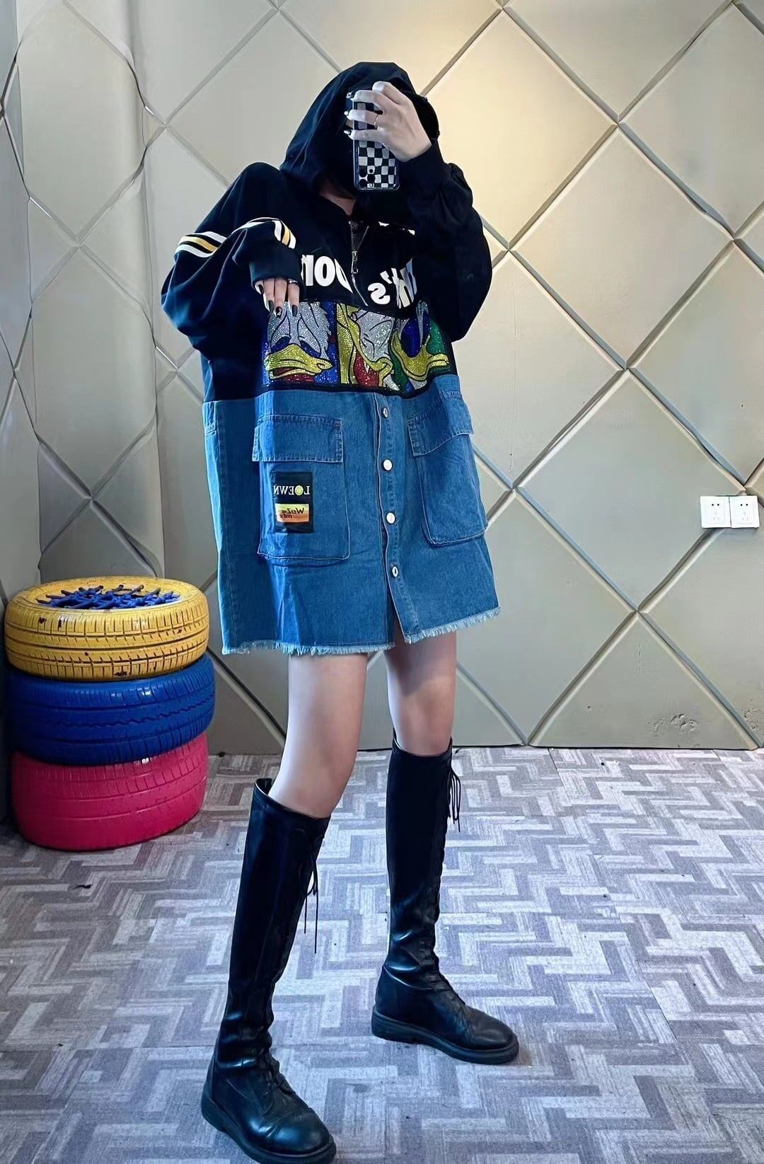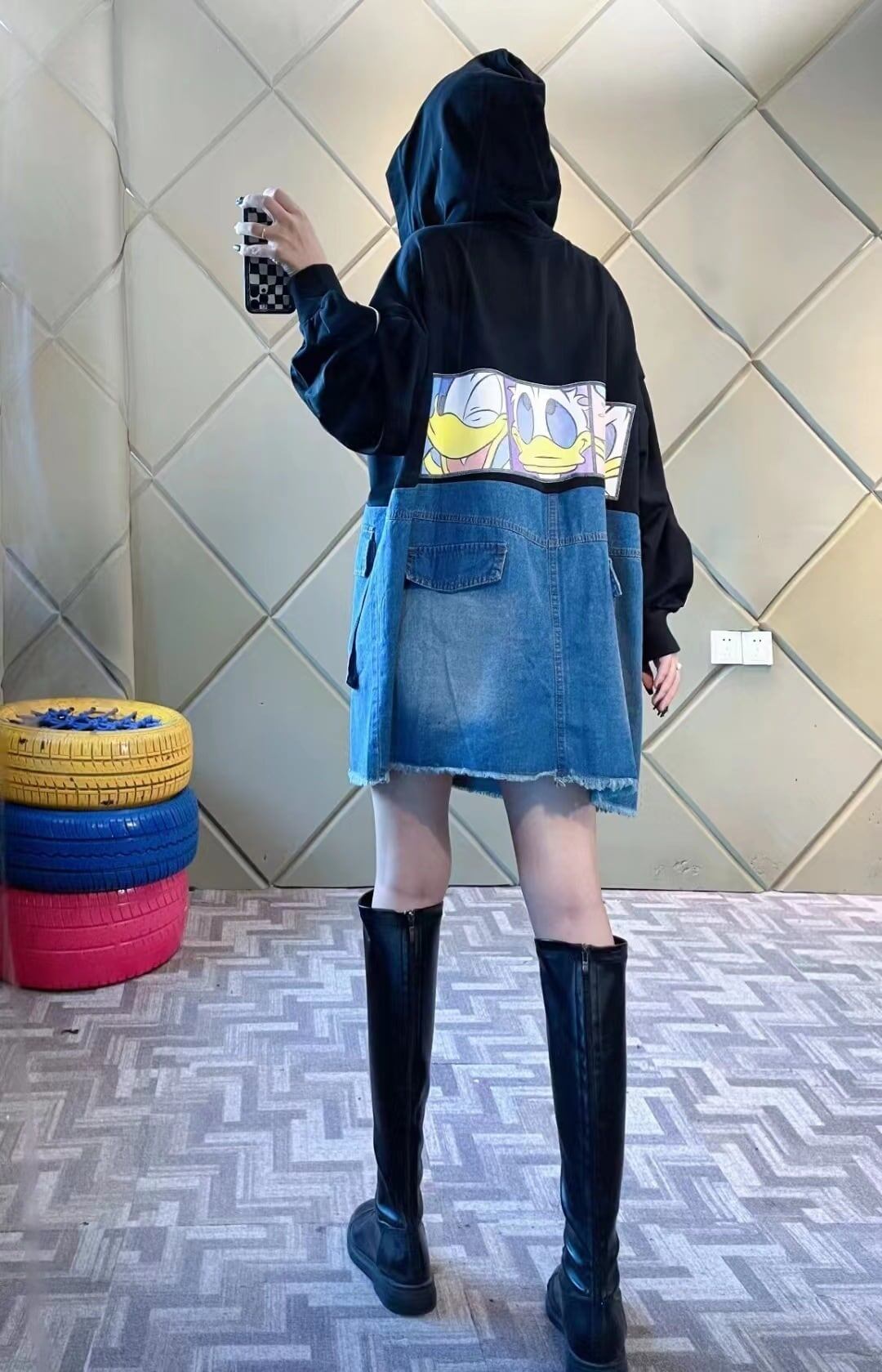 2023秋の新漫画ホットダイヤモンドステッチデニムフード付きセーター<ins-5176>