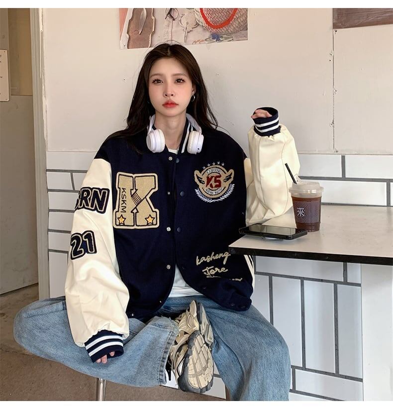 【秋の初めの割引!!】刺繍入りボンバージャケット<ins-5097>