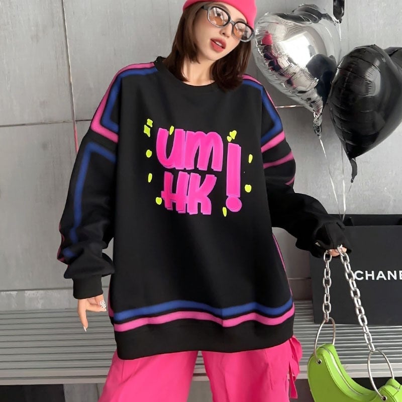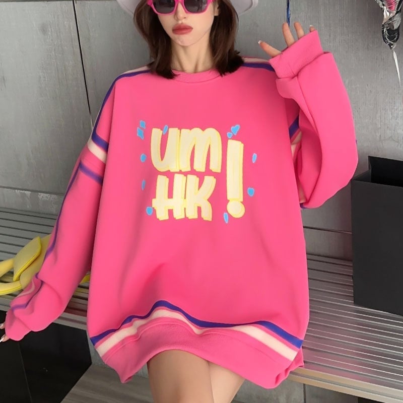売れ切れ必至 アルファベットプリント三色 オーバーサイズスウェット<ins-4115>