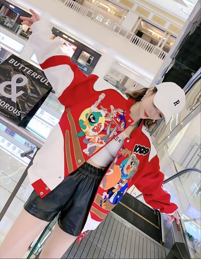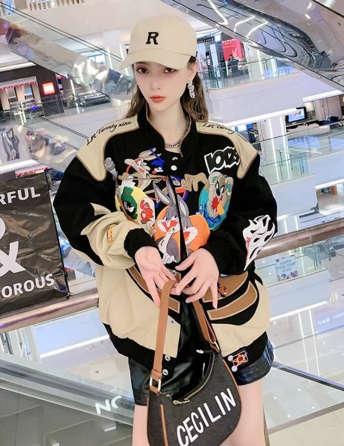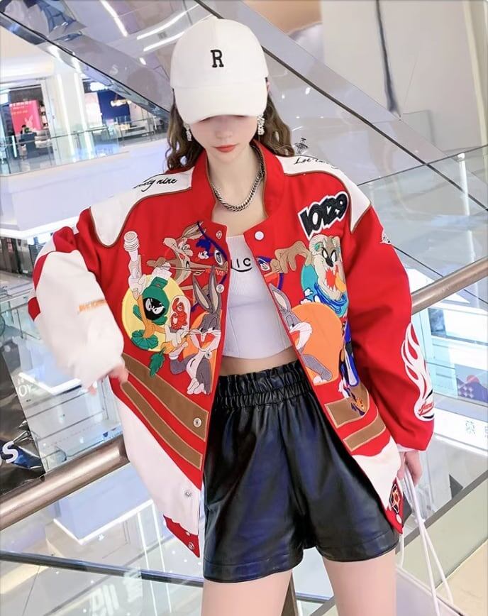 ルーズカジュアル刺繍ジャケット ベースボールジャケット<ins-5086>