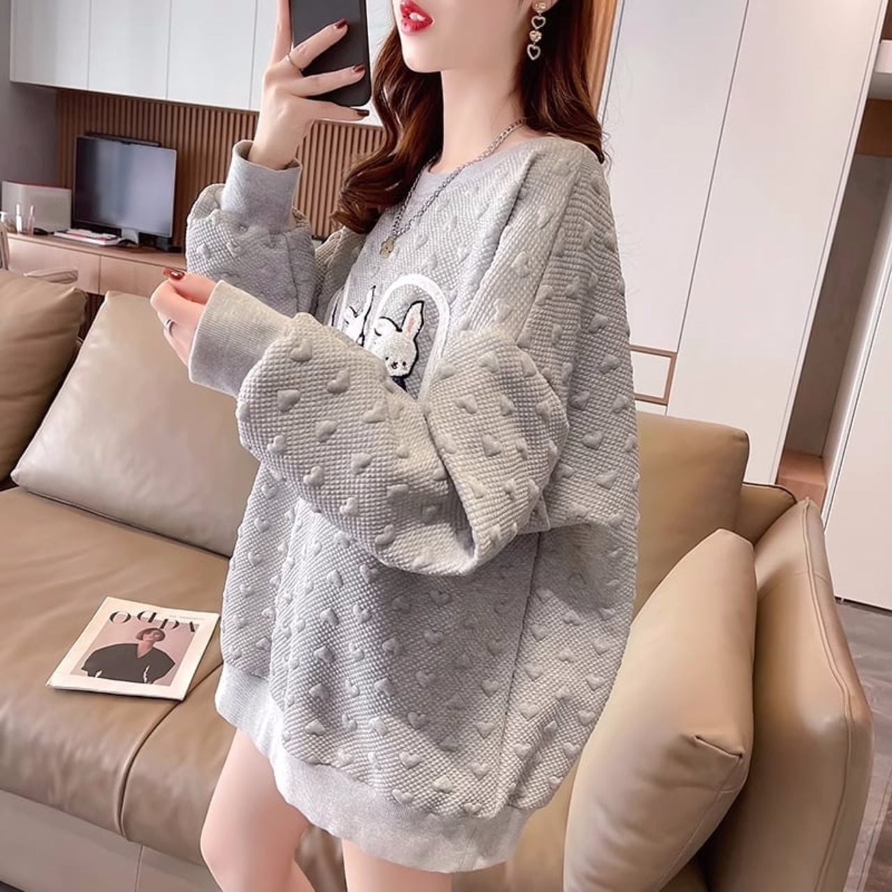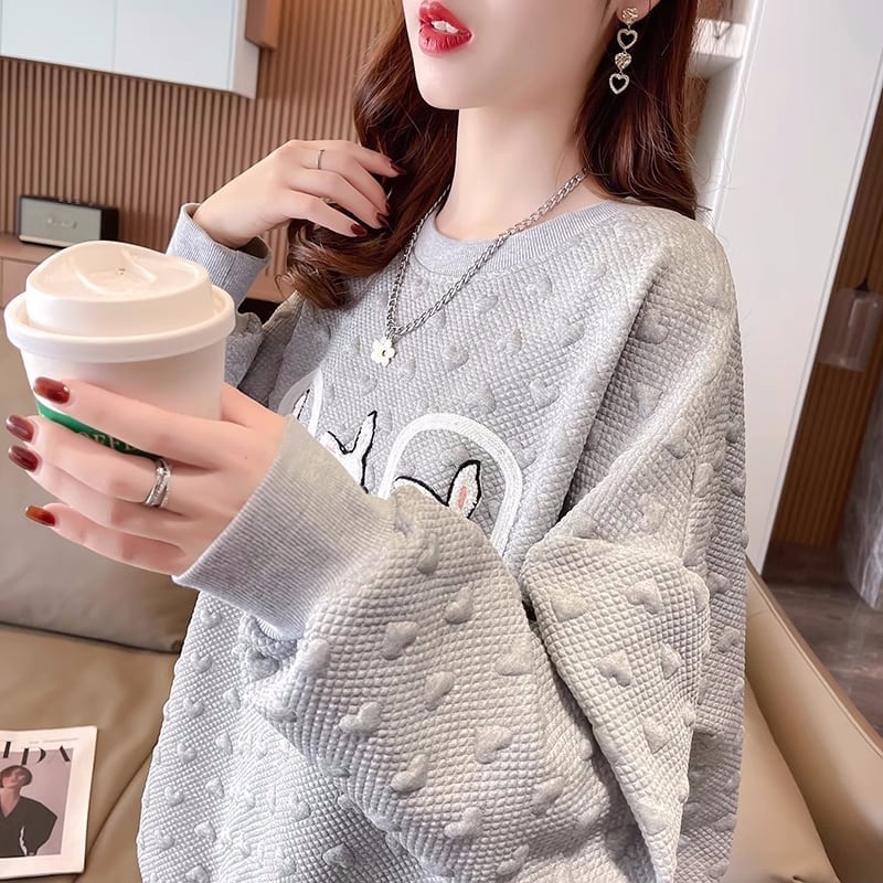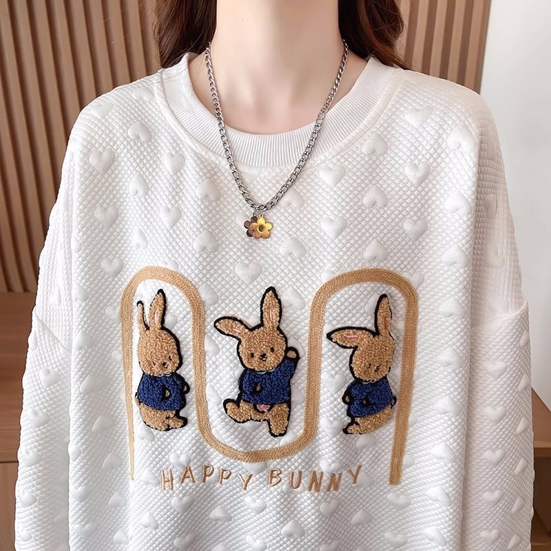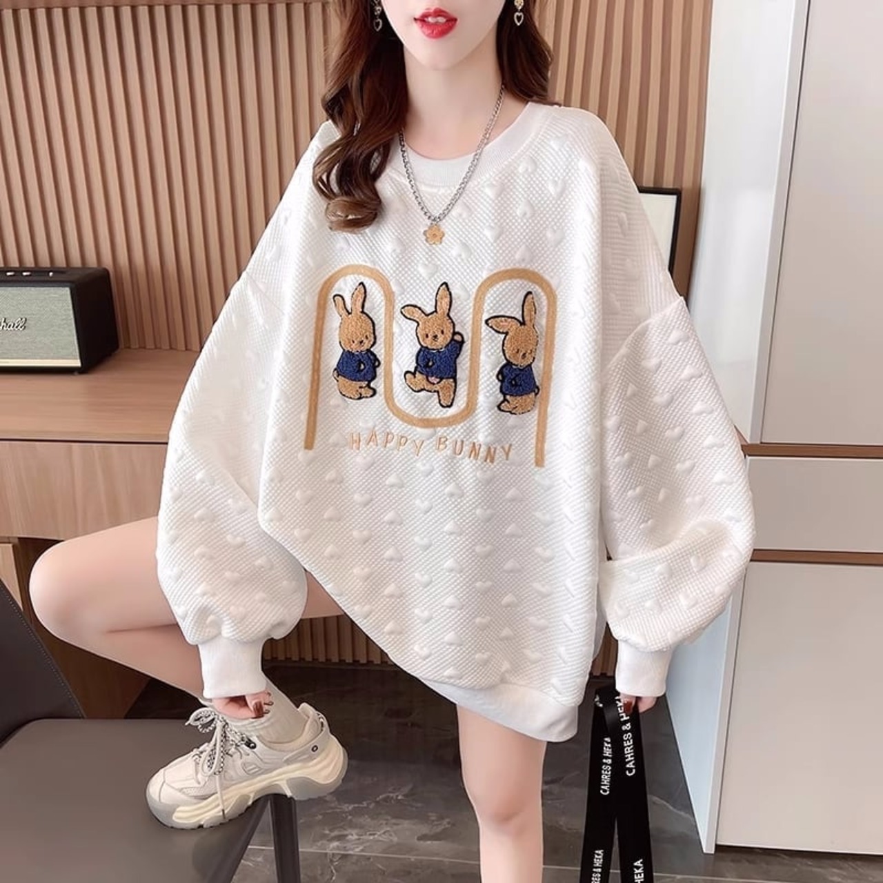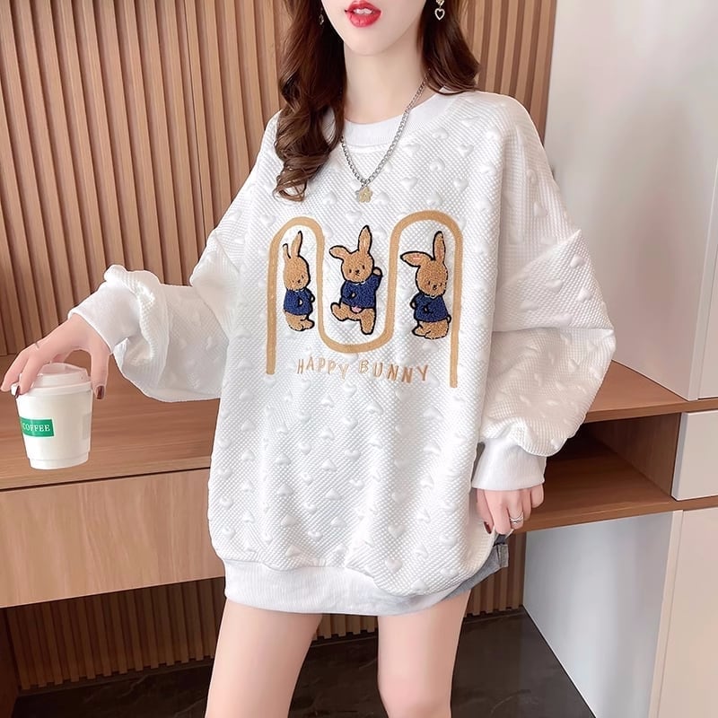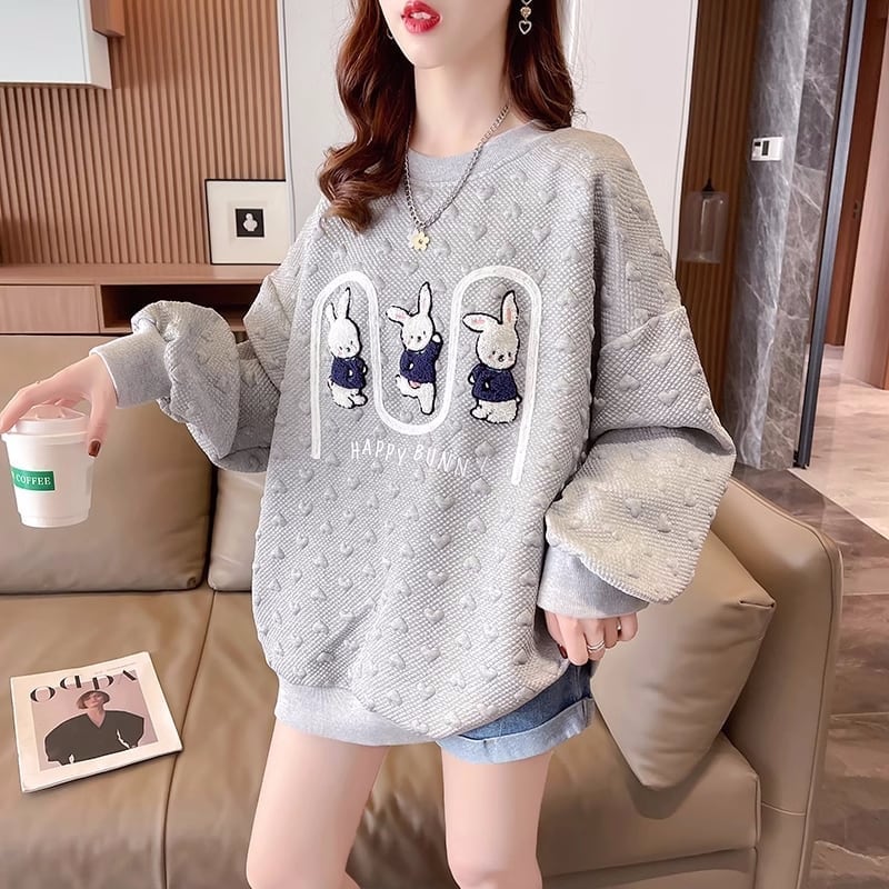 新作 ワッフル可愛いウサギちゃんプリント オーバーサイズ スウェット<ins-4111>