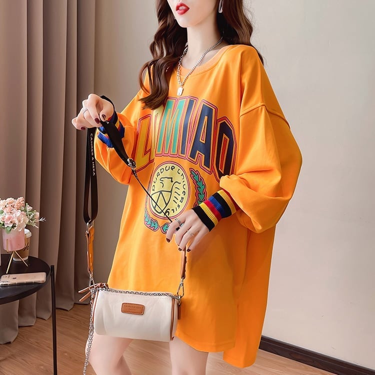 着せ 虹色 グラフィックプリント ロング長袖Tシャツ 三色トップス<ins-4107>