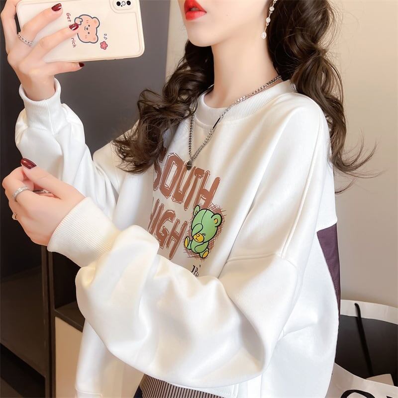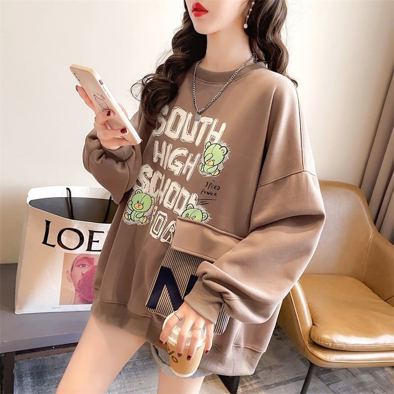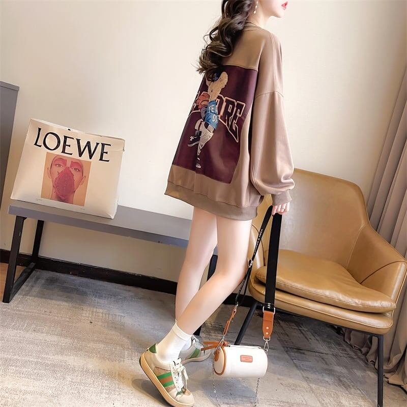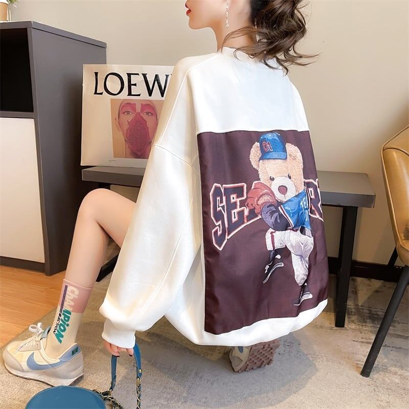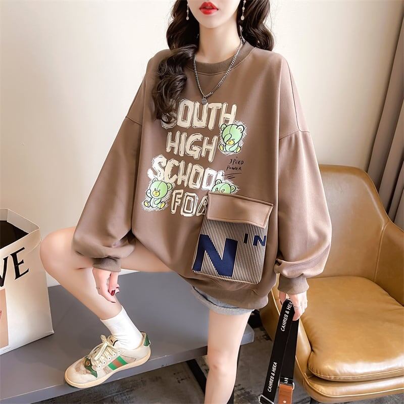 デザインされたビッグポケット漫画長袖Tシャツ<ins-5118>