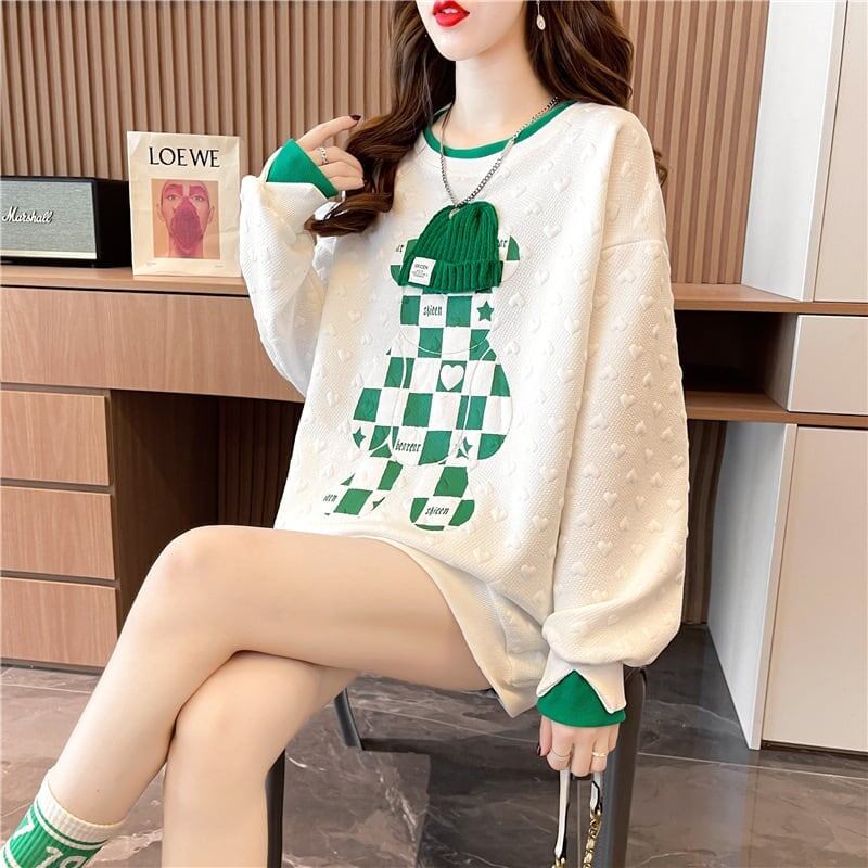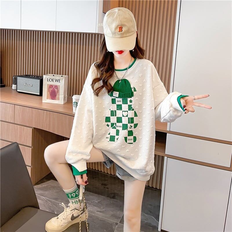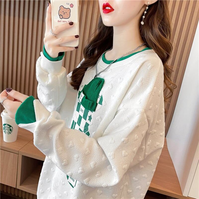 韓国風にデザインされたゆったりとしたプラスサイズの長袖トップ<ins-5032>