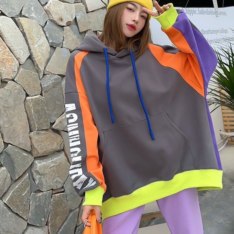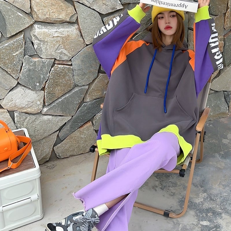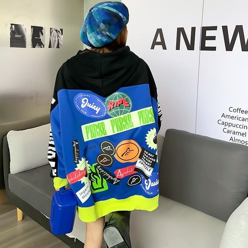 見逃し禁止 落書きストレート系 切り替えカラーマッチング フード付き パーカ<ins-4086>