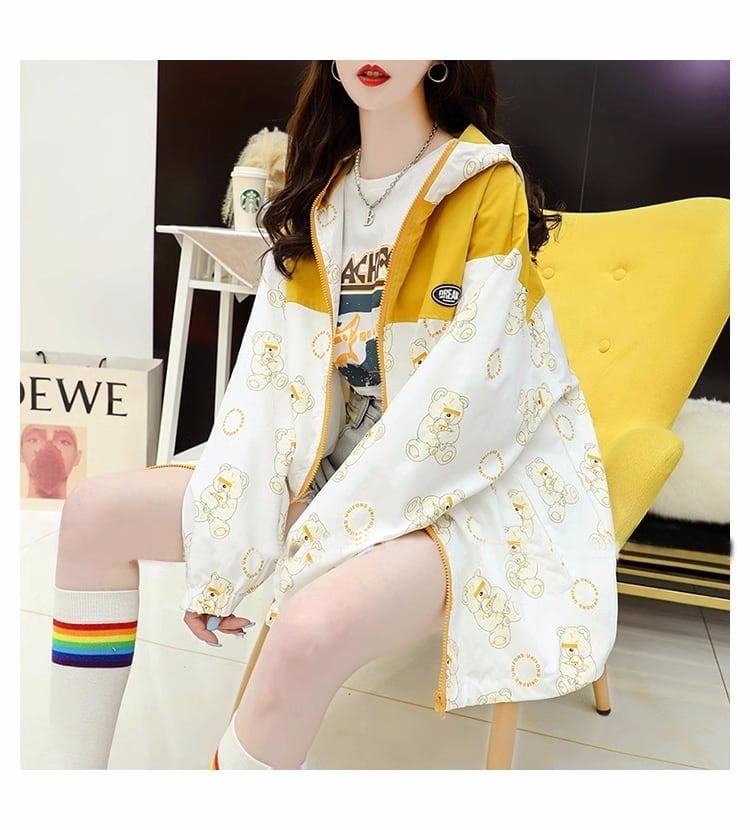 一目惚れクマ柄 ぬいぐるみ 配色フード付きパーカ トップス<ins-4078>