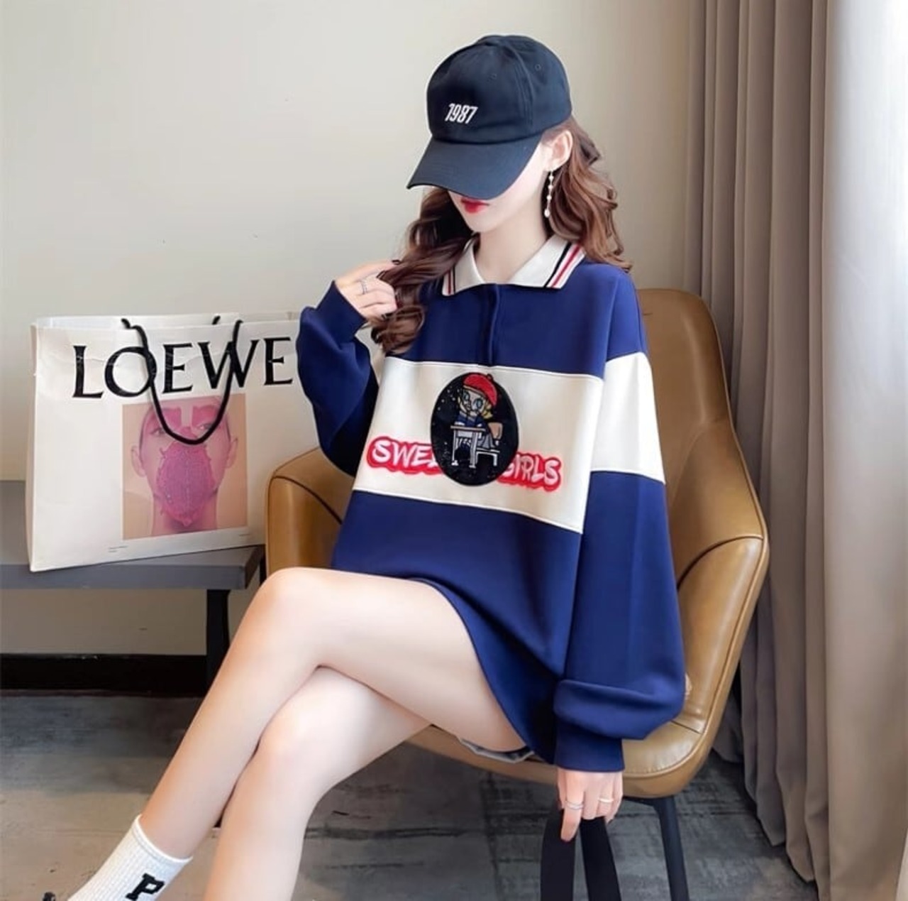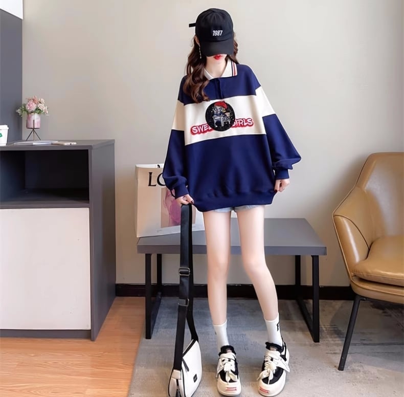 今季も大流行ポロネック 刺 切り替え スウェット<ins-4052>