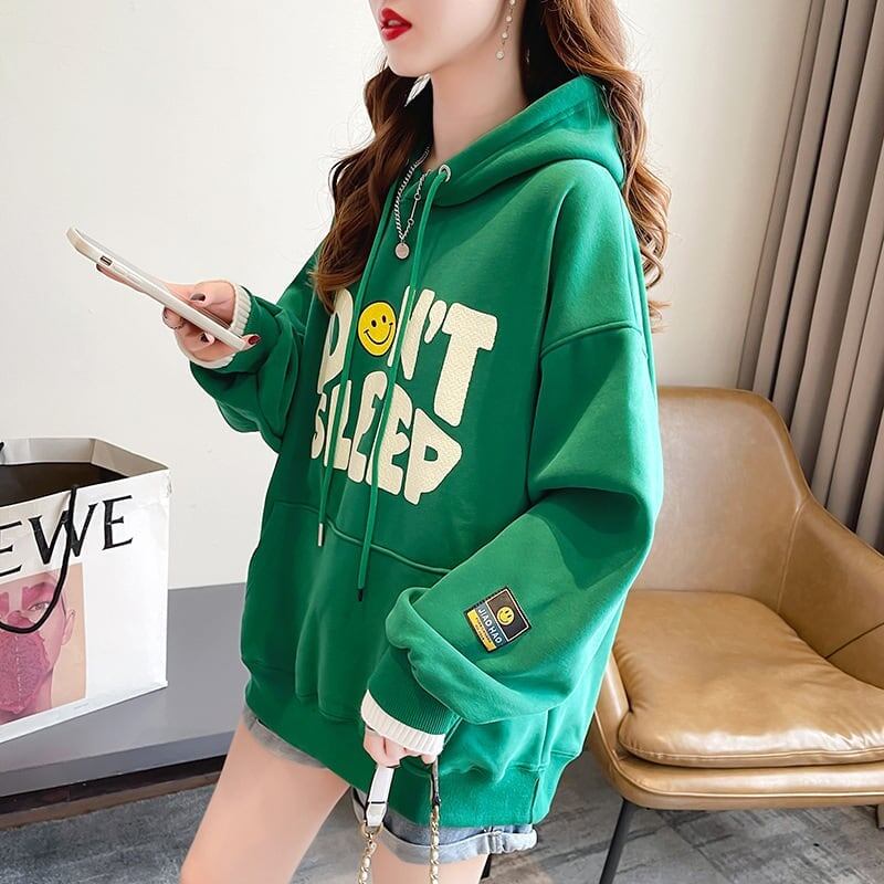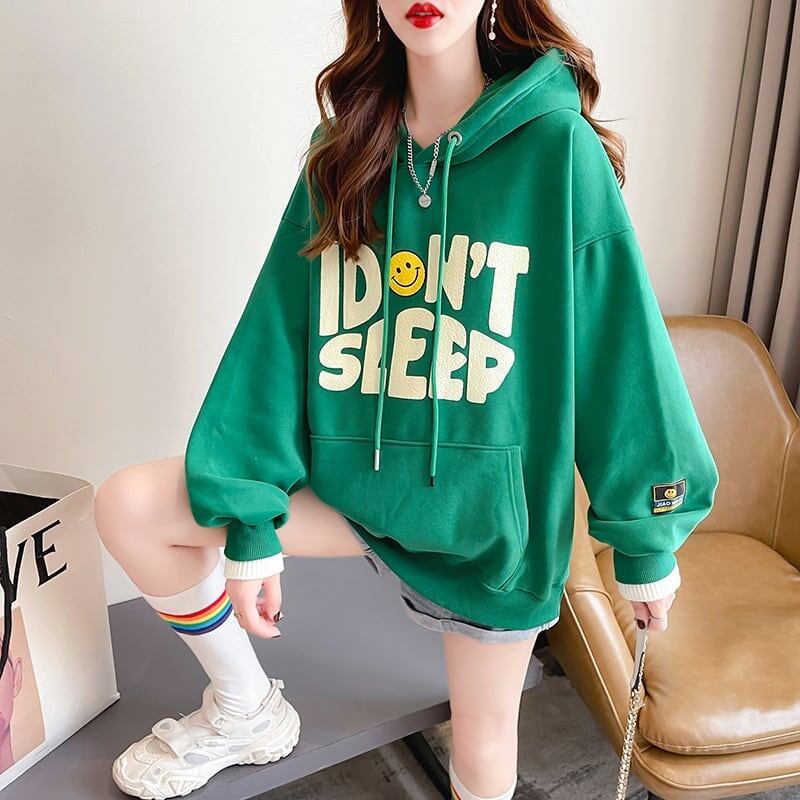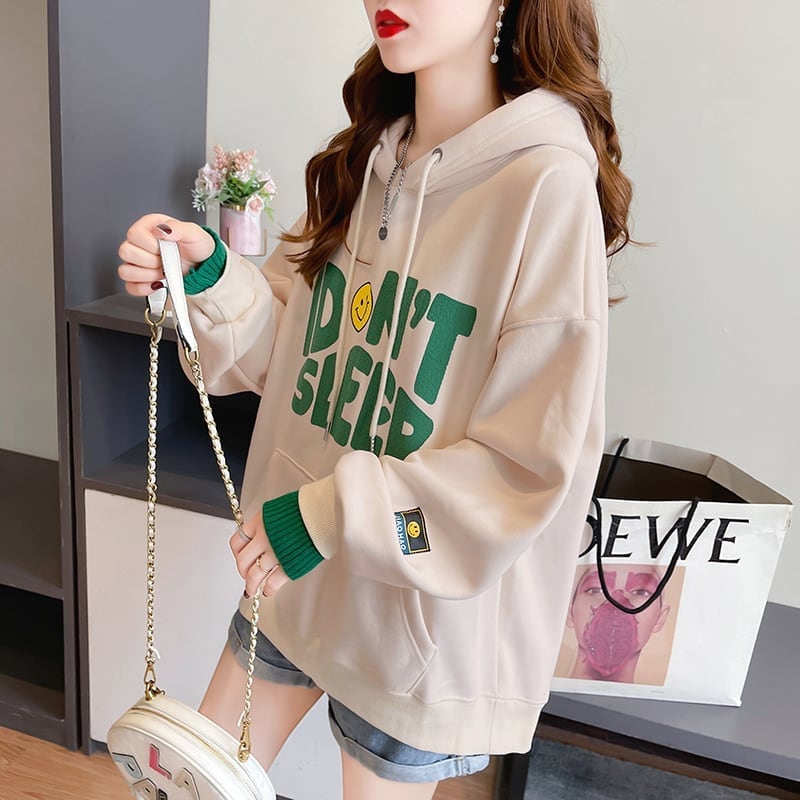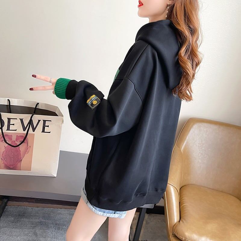 売り切れ必至スマイルマーク アルファベットプリント 三色フード付きパーカ<ins-4068>