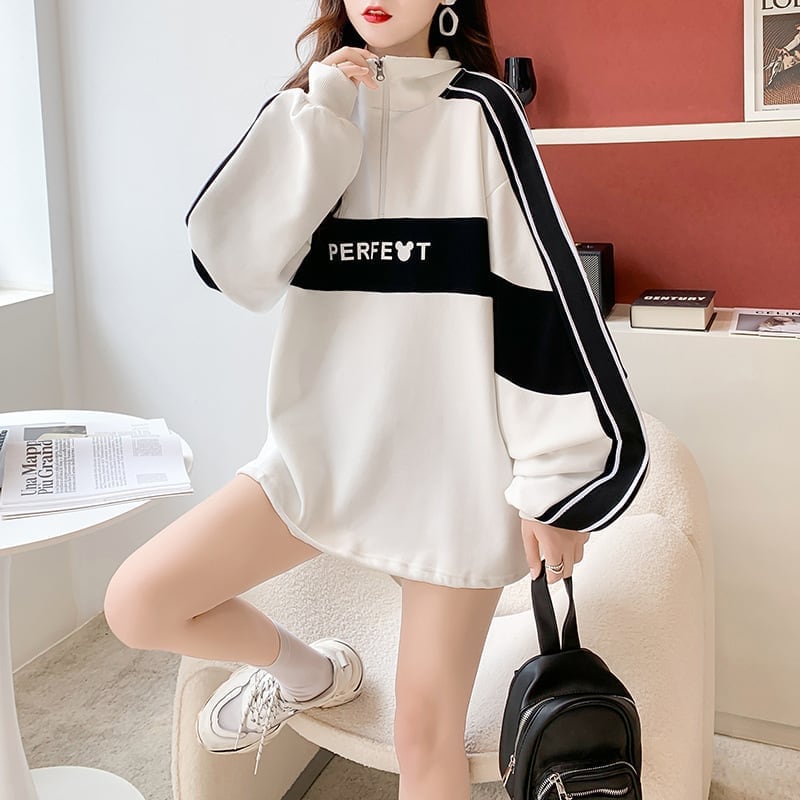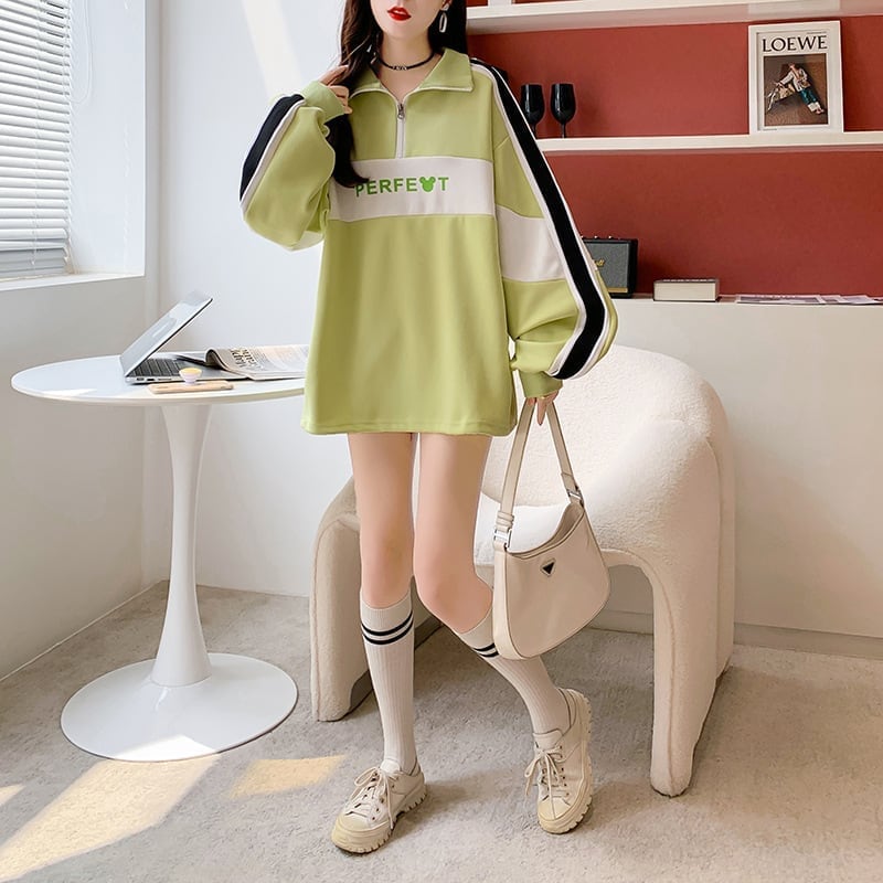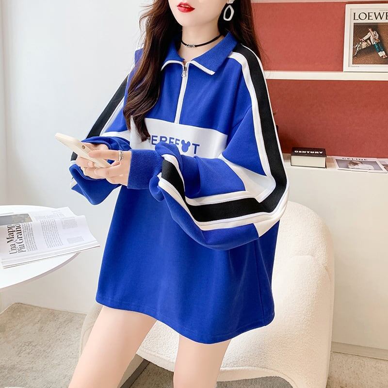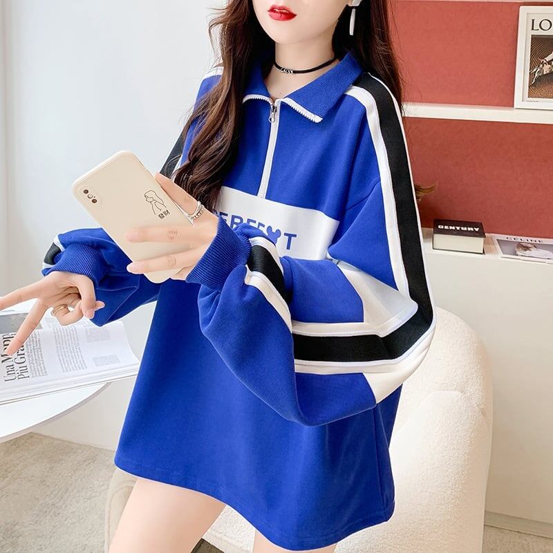 可愛いクマちゃん ロゴプリント配色切り替え 四色長袖トップス<ins-4056>