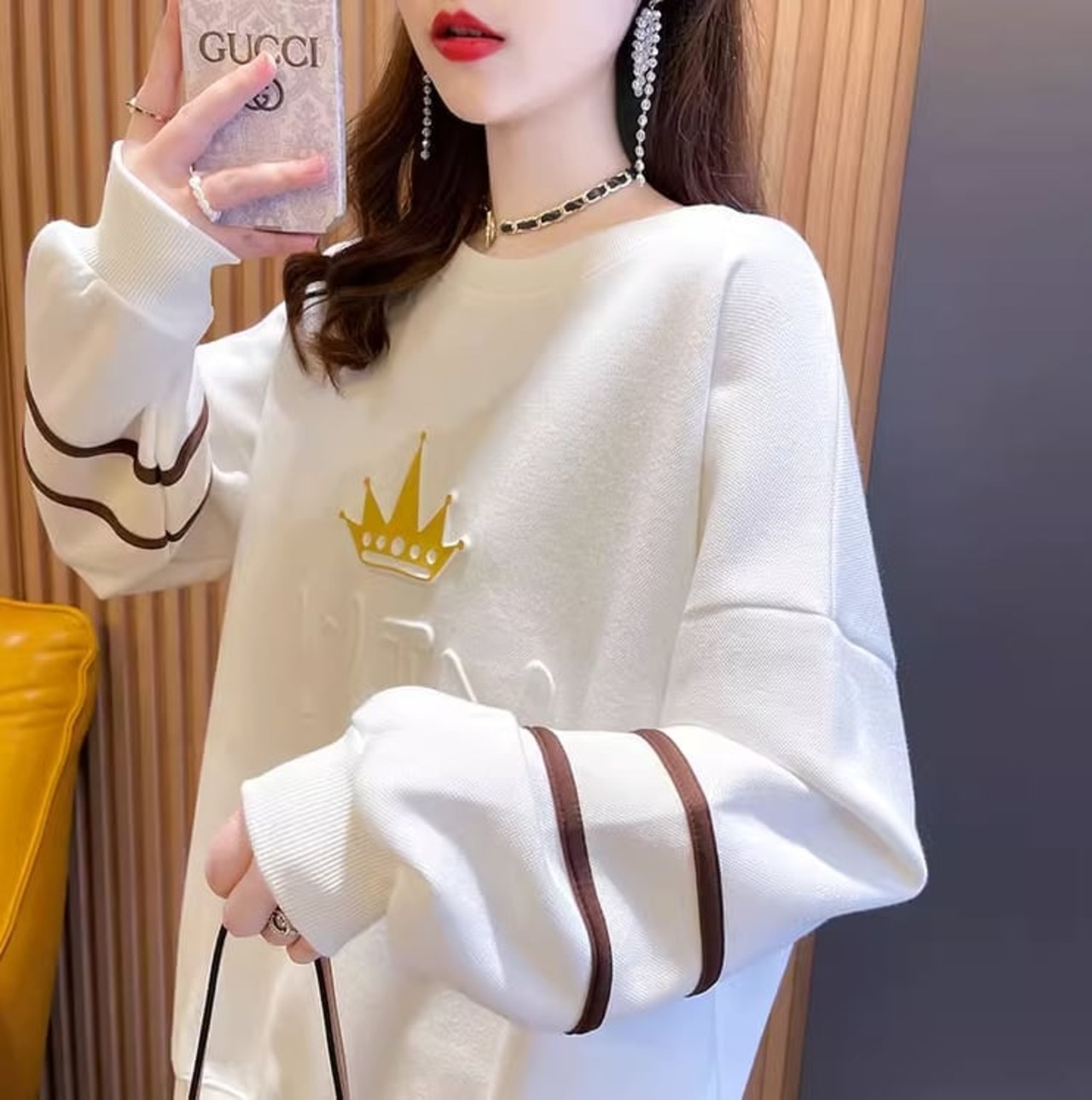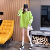 デザインセンス春秋薄地ゆったりオールマッチミドル丈トップス<ins-5045>