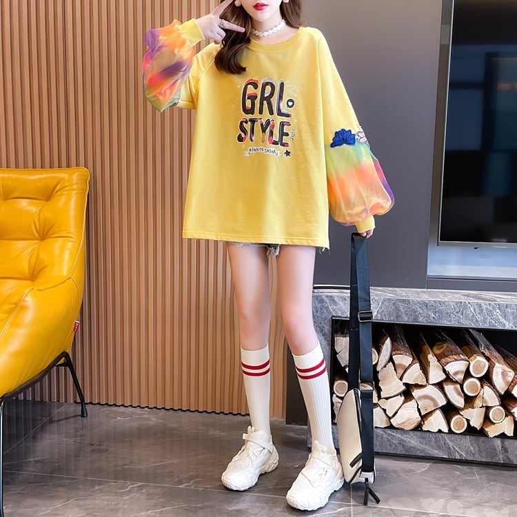 秋の新作 アルファベットプリント パフスリーブ 長袖ラグランTシャツトップス<ins-4032>