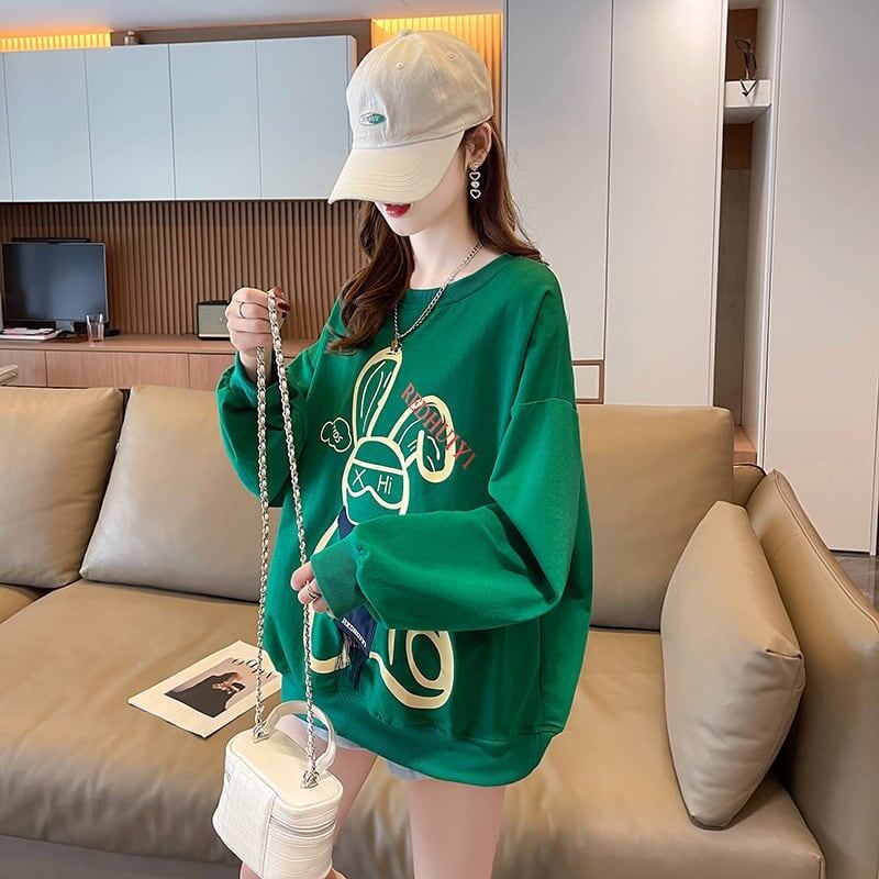 秋の薄いレイジースタイル漫画プリントトップ<ins-5034>