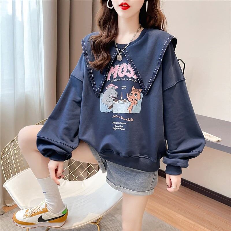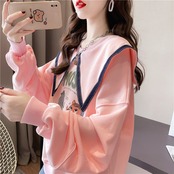 絶対欲しい セーラ服の襟 グラフィックプリント 三色 長袖Tシャツトップス<ins-4036>