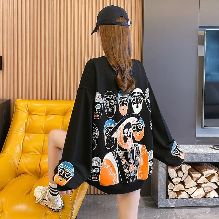 韓国系 グラフィック プリント 三色 スウェット トップス<ins-4023>