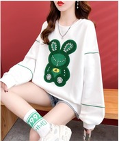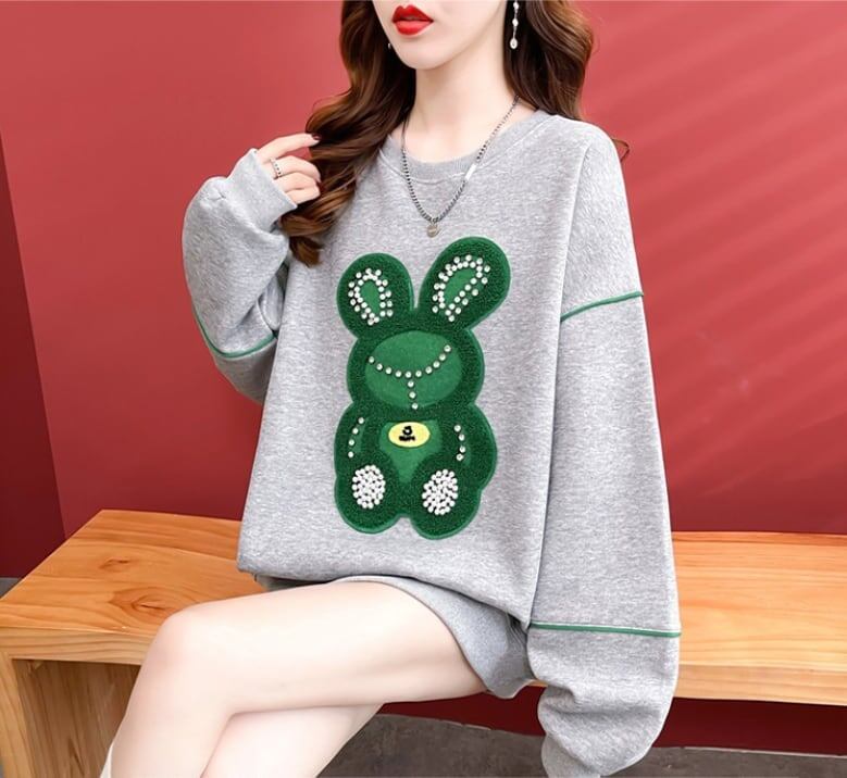 【秋の初めの割引!!】韓国風ルーズ漫画刺繍ホットダイヤモンドミドル丈トップス<ins-5024>