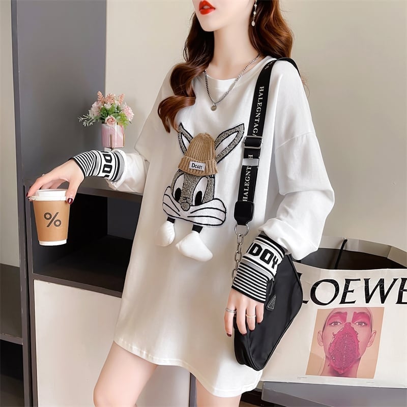【秋の初めの割引!!】美人度アップ ウサギちゃん トップス 二色 長袖Tシャツ <ins-4007>