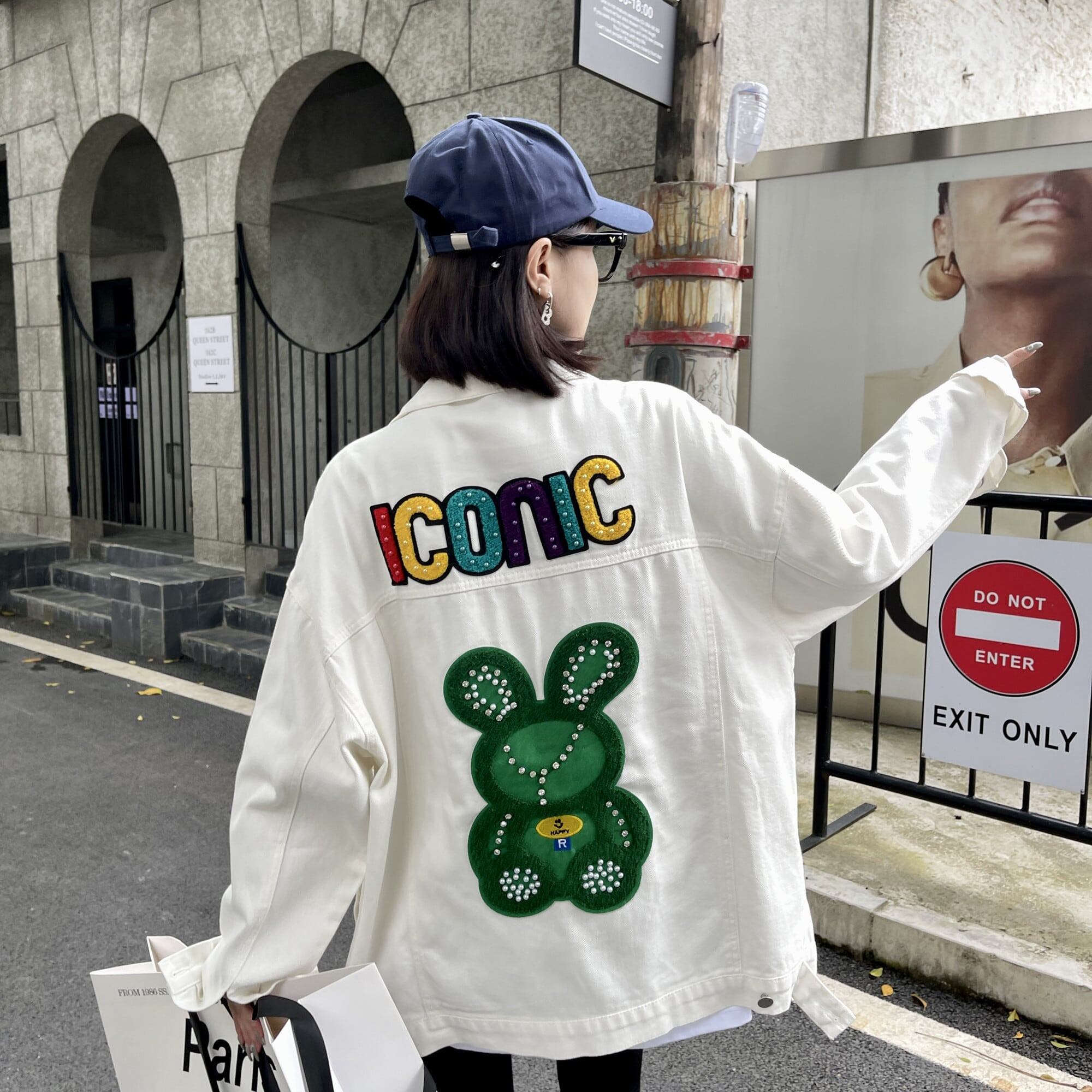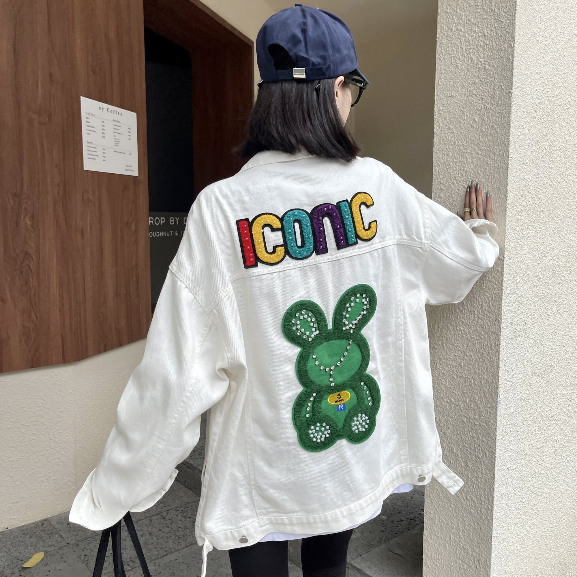新しい重工業用ダイヤモンドがちりばめられたルーズデニムジャケット<ins-5023>