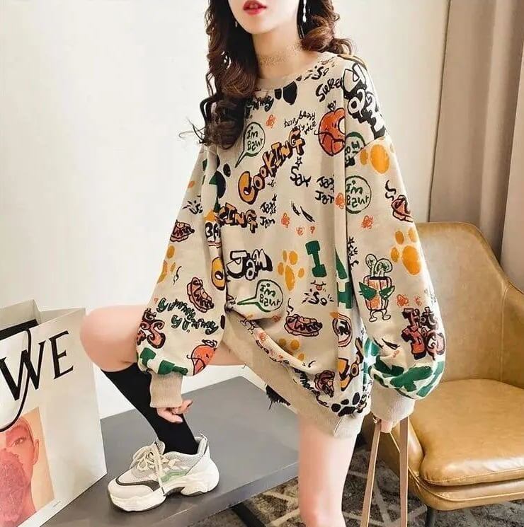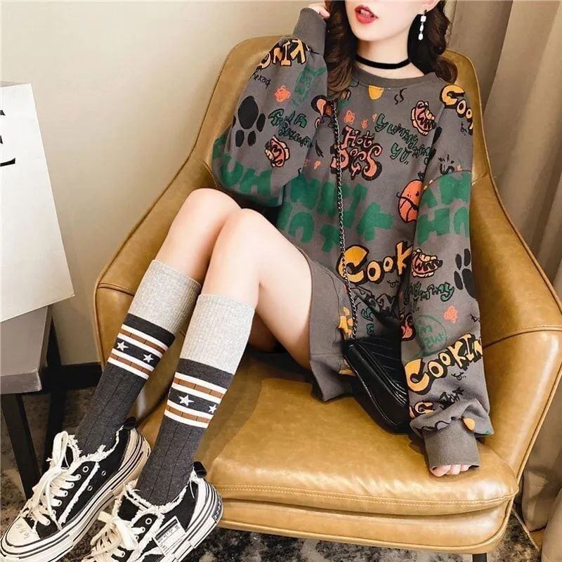 【半額!期間限定!!】韓国風ルーズミドル丈セーター<ins-5029>