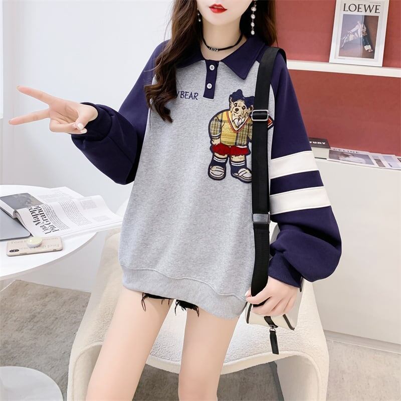 POLO 襟セーター 2023 新しいルーズカジュアルカレッジウィンドトップ<ins-5022>