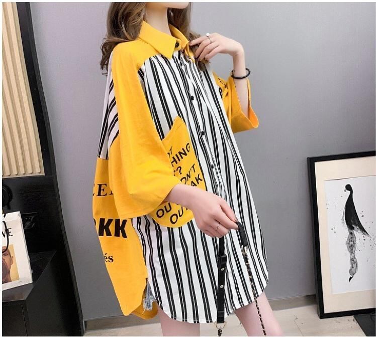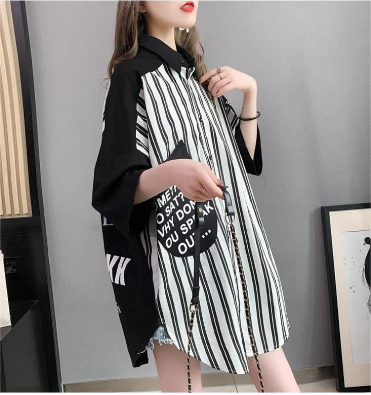 パネル ハーフスリーブ ミドル丈シャツ<ins-5013>