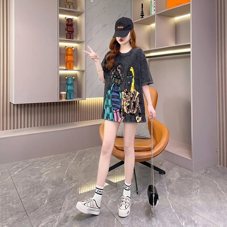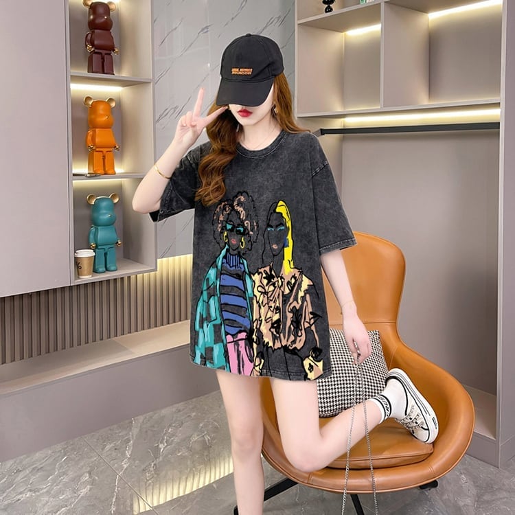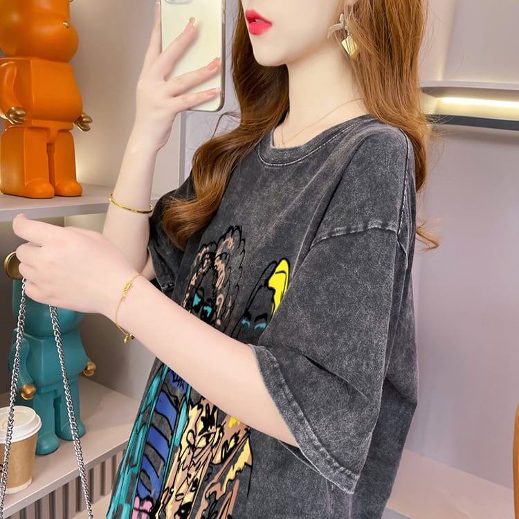 おすすめ ヴィンテージ加工 ストリート系 プリントTシャツ ゆったり半袖<ins-3022>