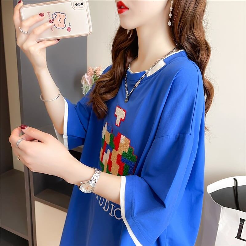 とてもデザイン性の高いモザイクエレメント半袖Tシャツ<ins-2986>