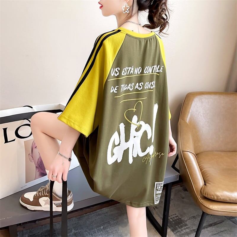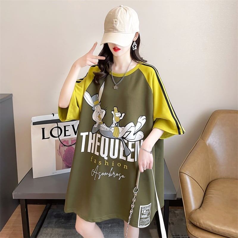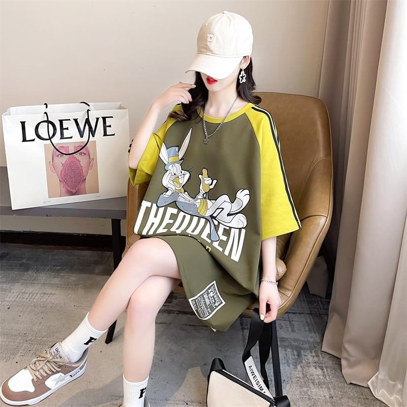 キュートなウサギのカラーブロック半袖Tシャツ<ins-2989>