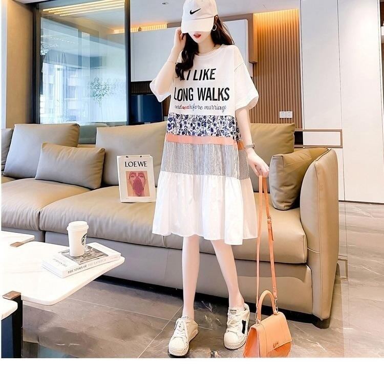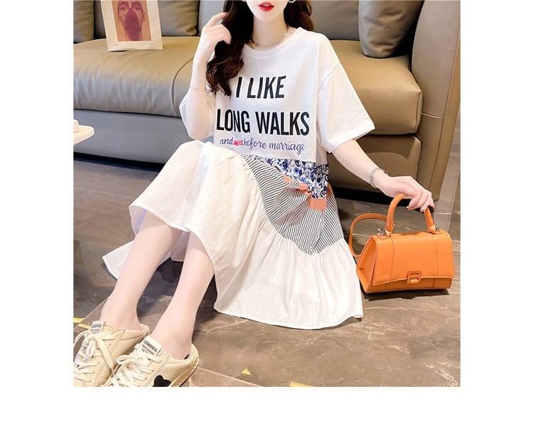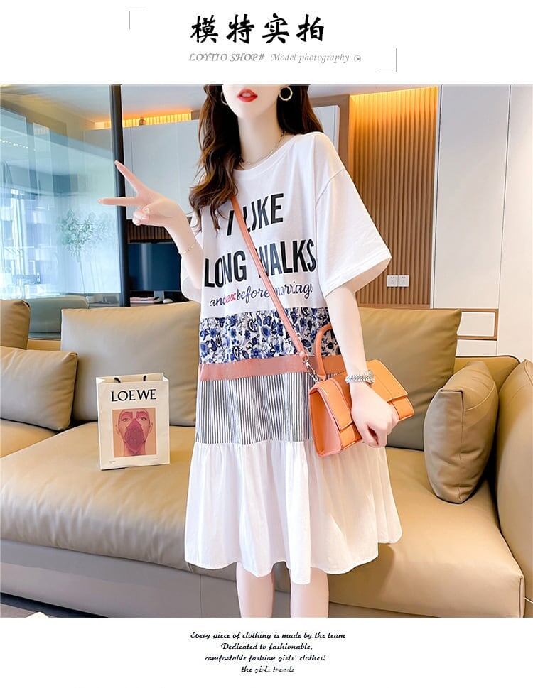大好評 切り替え アルファベット プリントワンピース ゆったり半袖<ins-2953>