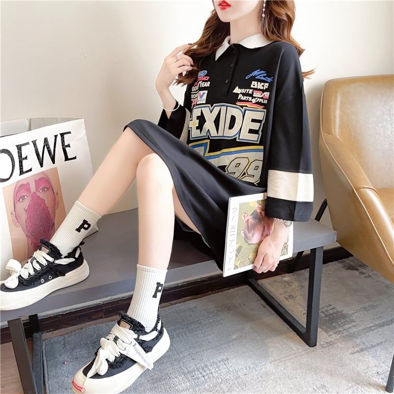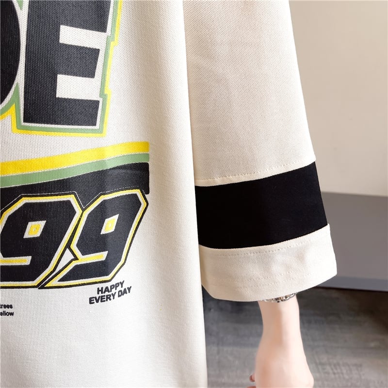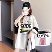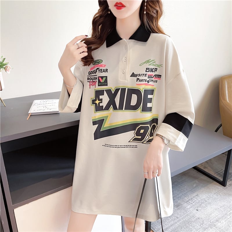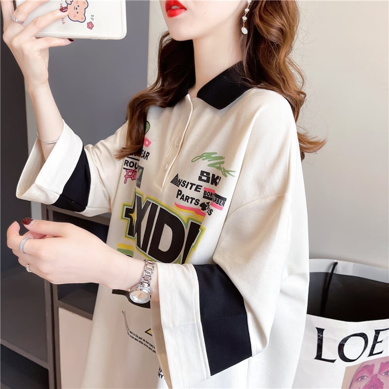質感のいい POLOネック ロング プリントTシャツ ゆったり半袖 <ins-2928>