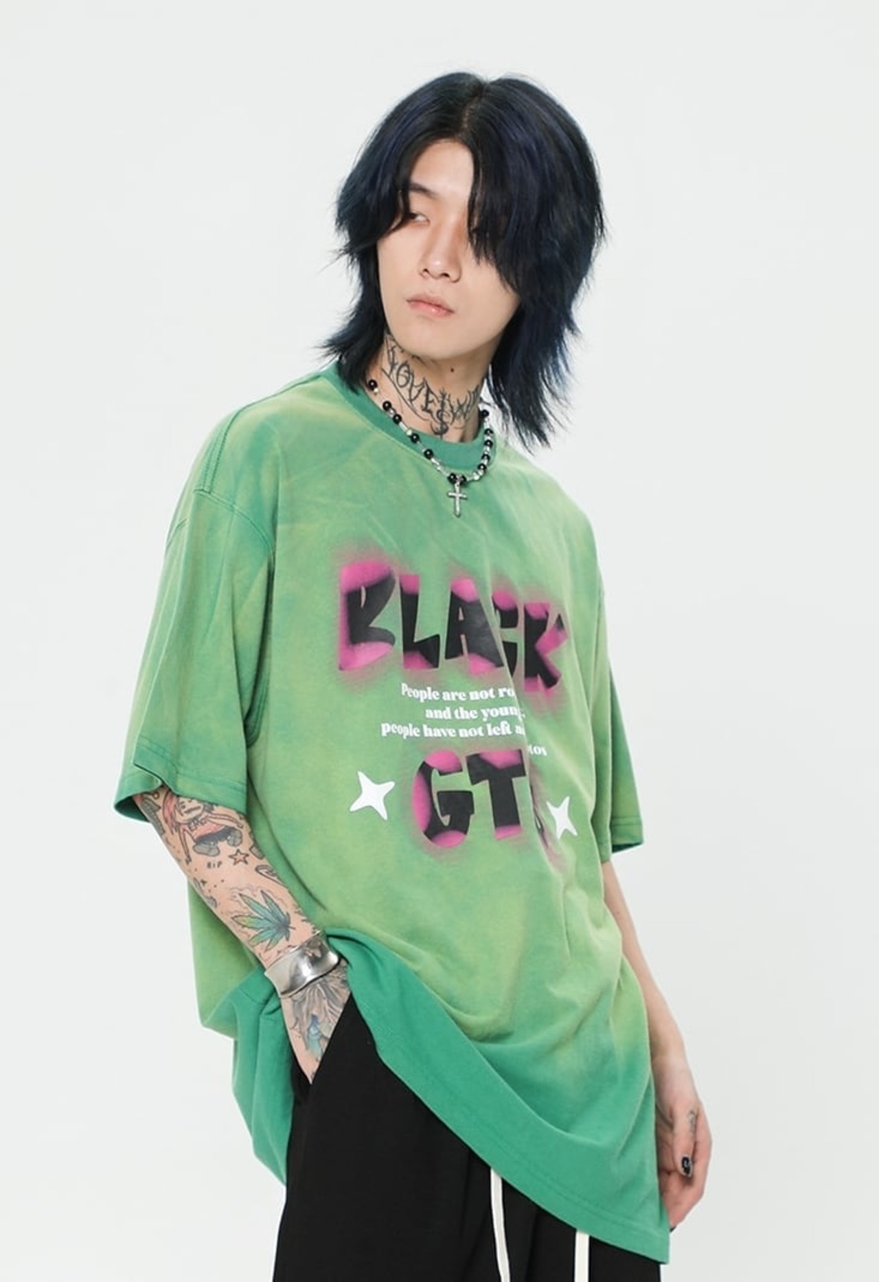見逃し厳禁 ストリート系 ファッション ヴィンテージ加工 アルファベット プリントTシャツ <ins-2921>