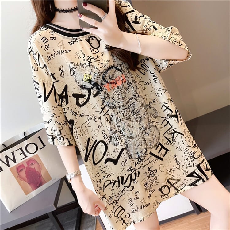 着せ バックオープン 立体のリボン ロング Tシャツ ゆったり半袖 <ins-2920>