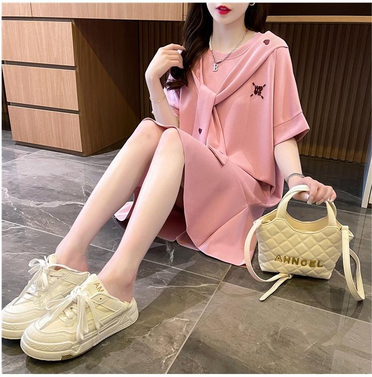 エレガントな刺繍スカーフドレス半袖Tシャツ<ins-2931>