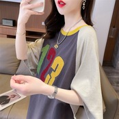 絶対欲しい 数字刺 カラーマッチング ロング Tシャツ ゆったり 半袖 <ins-2896>